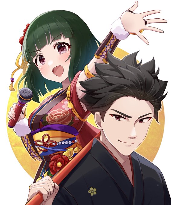 慶次様(@keiji_bushotai )と肖像画を描く契りを交わしたので仁美ちゃんと一緒に描いてみました! でらます盛り上げて下さりありがとうございます✨ #前田慶次様の肖像画 #名古屋おもてなし武将隊 #丹羽仁美