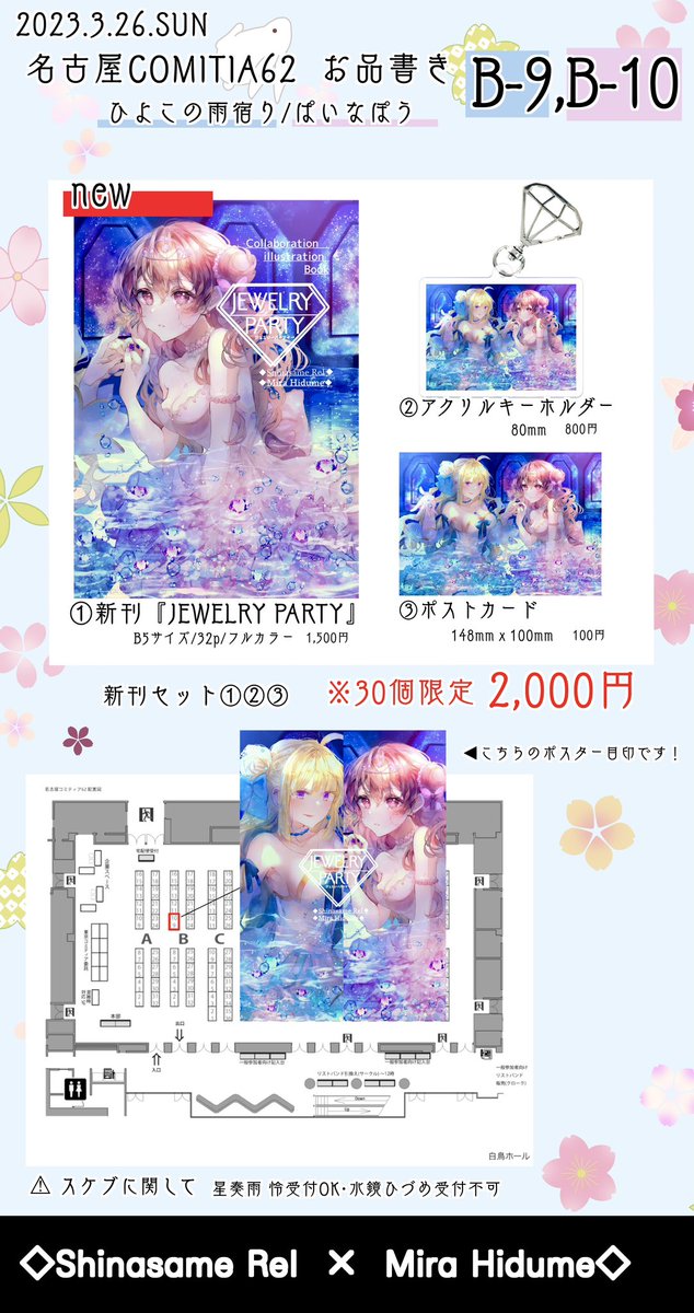 #名古屋コミティア62 3/26(日)名古屋コミティアのお品書きになります。 コミティア初参加❣️ということでグッズをたくさん作りました🤍✨️ この中でも新刊、缶バッチ、クリアファイルはキラキラなので見ごたえ抜群です…👀✨️ 当日はよろしくお願い致します!!