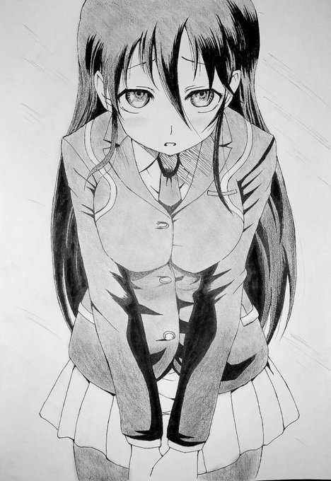 #君は008 #50音キャライラスト 松江名俊先生作品のキャラクター名前で 「ゆ」 アユーシちゃんリクエスト 制服を着た姿ということで せっかくだから中野で1番特徴的な制服を (*´∀`*) アユーシちゃんはネクタイを胸あたりに結んでいるみたい。コタンびっくりしてますね(^^) 次は「よ」、誰かいます?