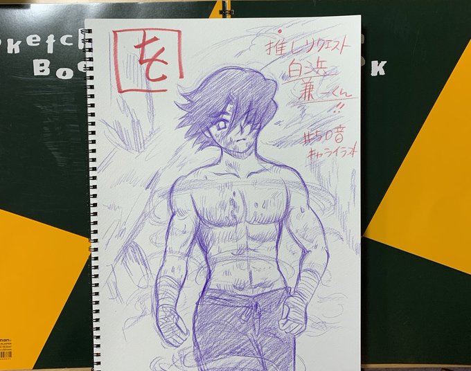 #君は008 #50音キャライラスト 松江名俊先生作品のキャラクター名前で 「を」 推し!ということで リクエストいただいた 白浜兼一くん。 何ぶん絵が小さいので写真に撮って拡大してみたら、、描き込みがハンパなかった (>人<;) かっこいい! 次は、50音キャライラスト最後の「ん」誰でしょうか?