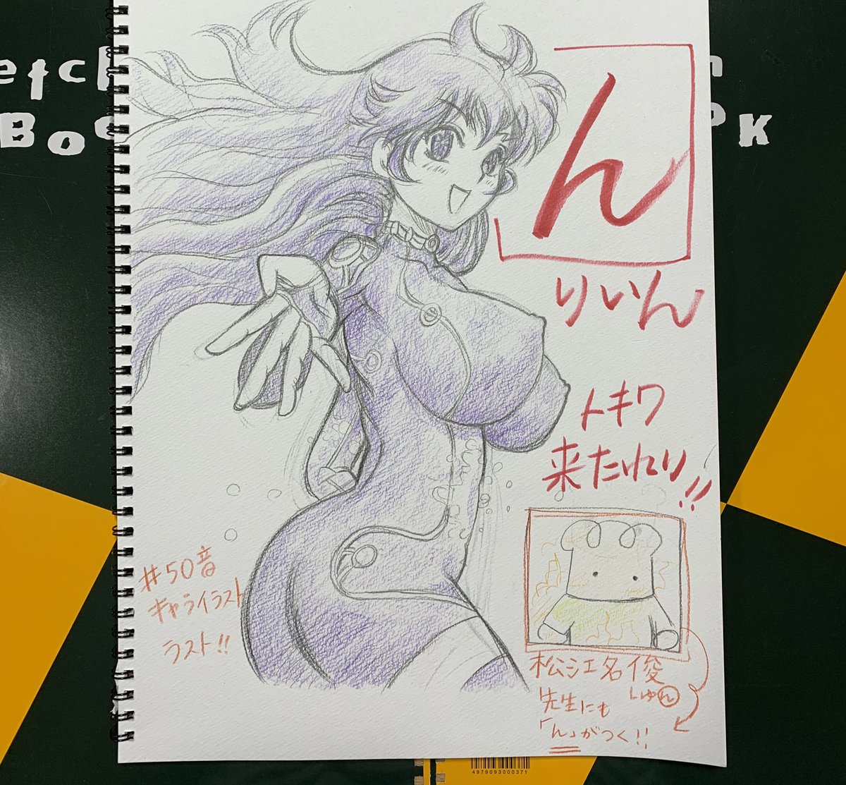 #君は008 #50音キャライラスト 松江名俊先生作品のキャラクター名前で 「ん」 最後はトキワ来たれり!!より 電脳の女神りいん。 &実は松江名俊先生にも「ん」が! 50音で名前を連ねても、まだまだたくさんのキャラクターが残っているとは驚き。これからもたくさんのキャラクター楽しみにしてます^_^