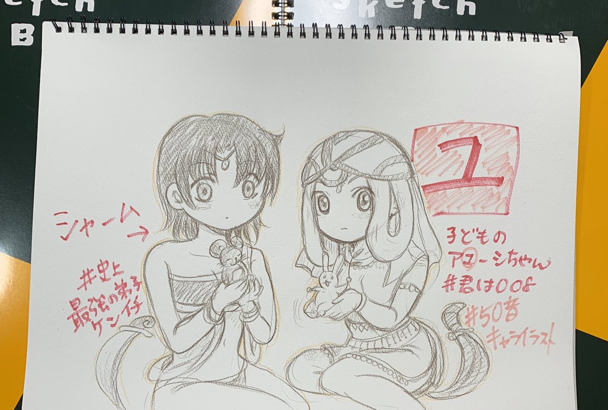 #君は008 #50音キャライラスト #史上最強の弟子ケンイチ 松江名俊先生作品のキャラクター名前で 「ゆ」 子供のアユーシちゃん \(^^)/ とシャームたち。 リクエストにあったパンダは難易度高く、、 (>人<;) 次はターザンルックのアユーシちゃんに挑戦です!