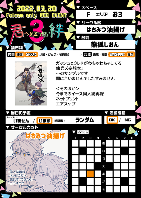 #君へとどける絆3 #ファルコムオンリー #君へとどける絆3お品書き お品書きできました!ネットプリントのみとなりますがよろしくお願いいたします。 エアスケブは随時募集しているので、よろしくお願いいたします。