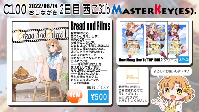 あなたのサークル「Masterkeyes」は、コミックマーケット100で「日曜日西地区 "こ " 31b」に配置されました!コミケWebカタログにてスペース配置場所公開中です! webcatalog.circle.ms/Circle/Map/162… #C100WebCatalog #君彩 の話書いてるよ~よろしくおねがいしまっす #C100 #矢吹可奈