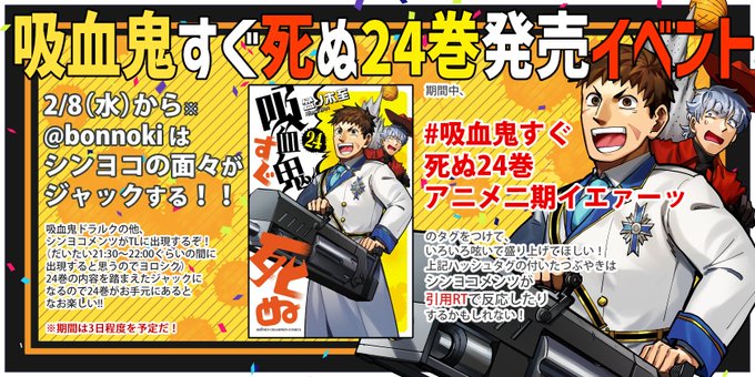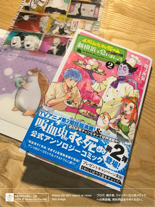 2月8日(水)発売『「吸血鬼すぐ死ぬ」公式アンソロジー新横浜で会いましょう』第2巻ご恵贈いただきました。カラーイラストを寄稿しております。この度は発行おめでとうございます! #吸血鬼すぐ死ぬ twitter.com/MysteryBonita6…