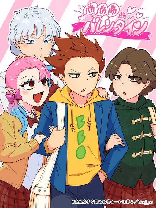 #吸血鬼すぐ死ぬ19巻ムーンは昇る ❤️波乱必至の3学期スタート! 🍫バレンタインまであと何日……? コミックスでもかわいいヒロイン(?)たちに会えて嬉しいです! イメージの姿でラブコメアニメ風に描いてみました😌