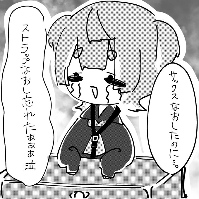 吹奏楽サックスパートあるある 【 片付け後、ストラップを片付け忘れたことに気づく 】 の図 #rkgk #イラスト #絵柄が好みって人にフォローされたい #絵描きさんと繋がたい #絵描きさんと繋がりたい #吹奏楽あるある #吹奏楽部さんと繋がりたい #サックス