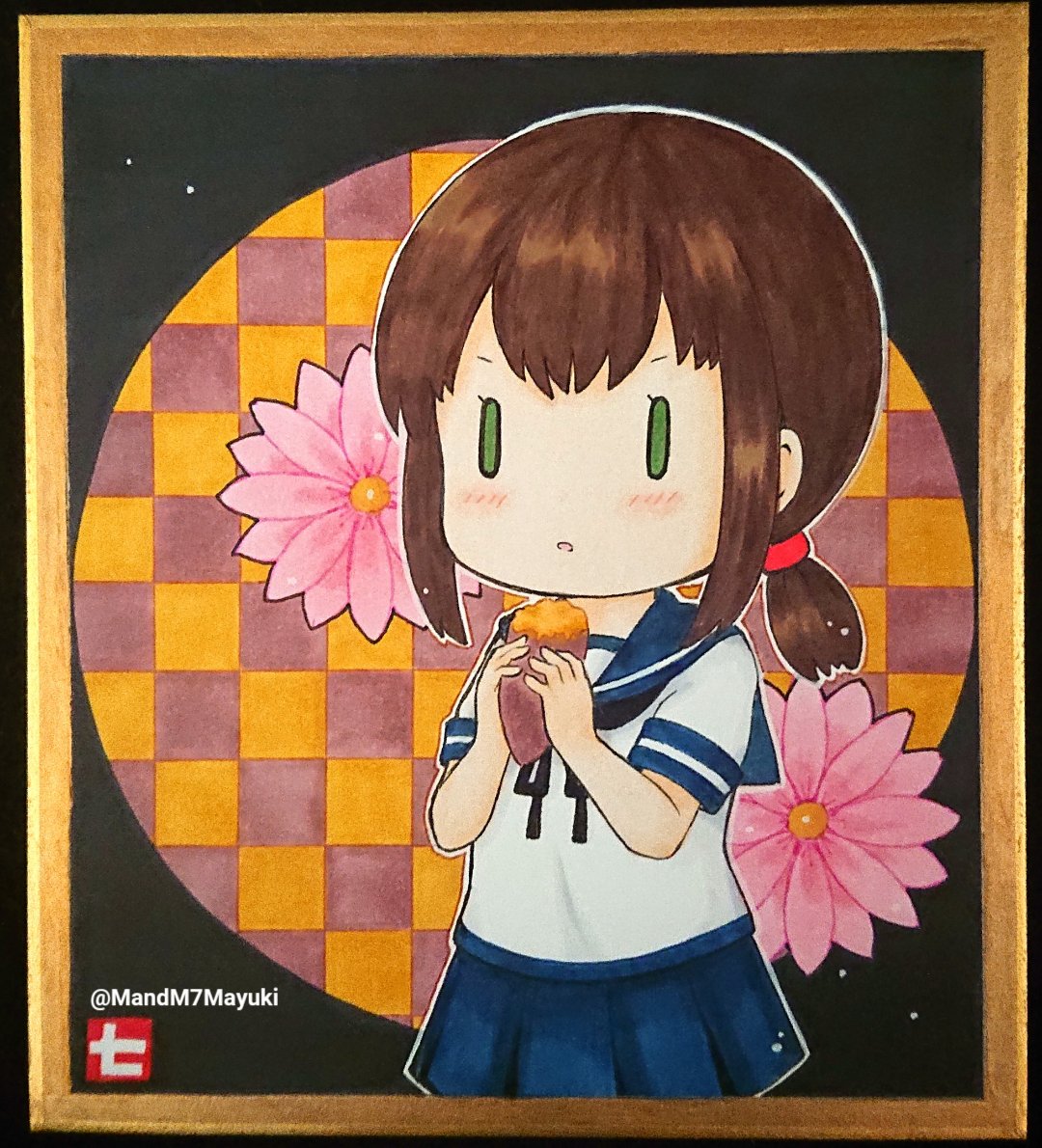 #吹雪版深夜の創作60分一本勝負 #艦これ #吹雪 @fubuki1draw お題:「ネクタイ」 大遅刻すみません 蝶々の周りで遊んでいたら蝶ネクタイのような形に見えるところに停まられて喜ぶ吹雪ちゃん