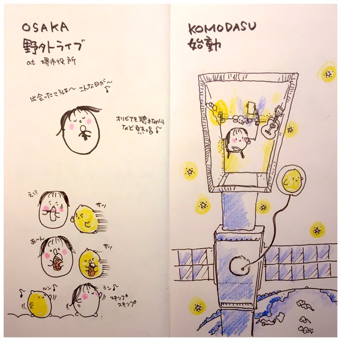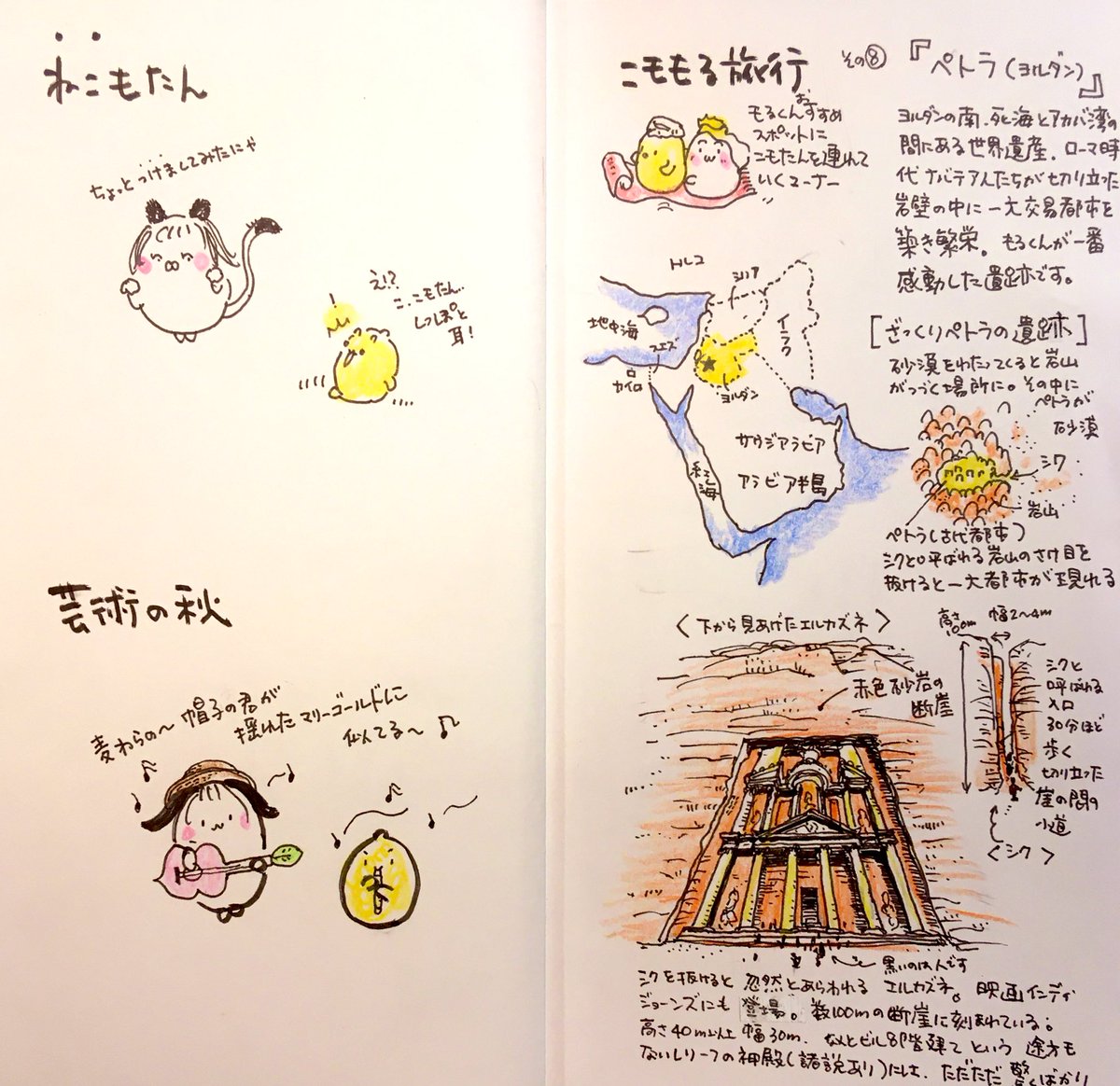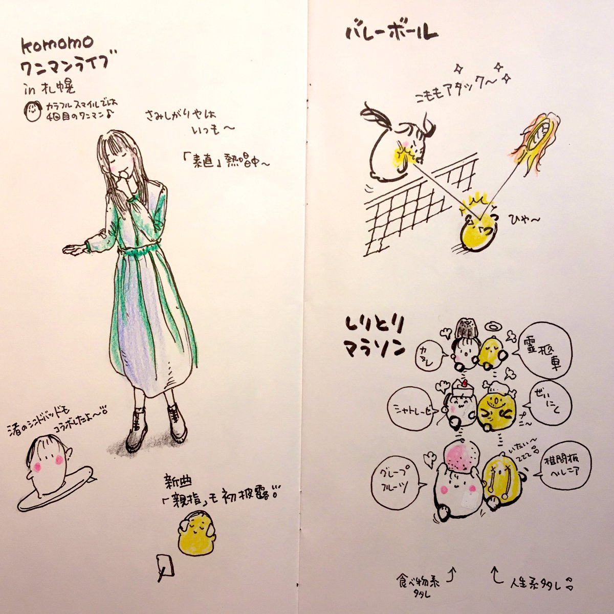 見開きアーカイブ9月前半 昨日は リアルこもたんの ワンマンライブ💖 いよいよ秋も本番ですね。 🍑使用画材 #トラベラーズノート #リフィル003 #呉竹筆ペン #コピックマルチライナー #ファーバーカステル水彩色鉛筆 #三菱鉛筆B #イラスト #よかったらお気に入り教えて下さい
