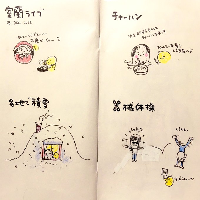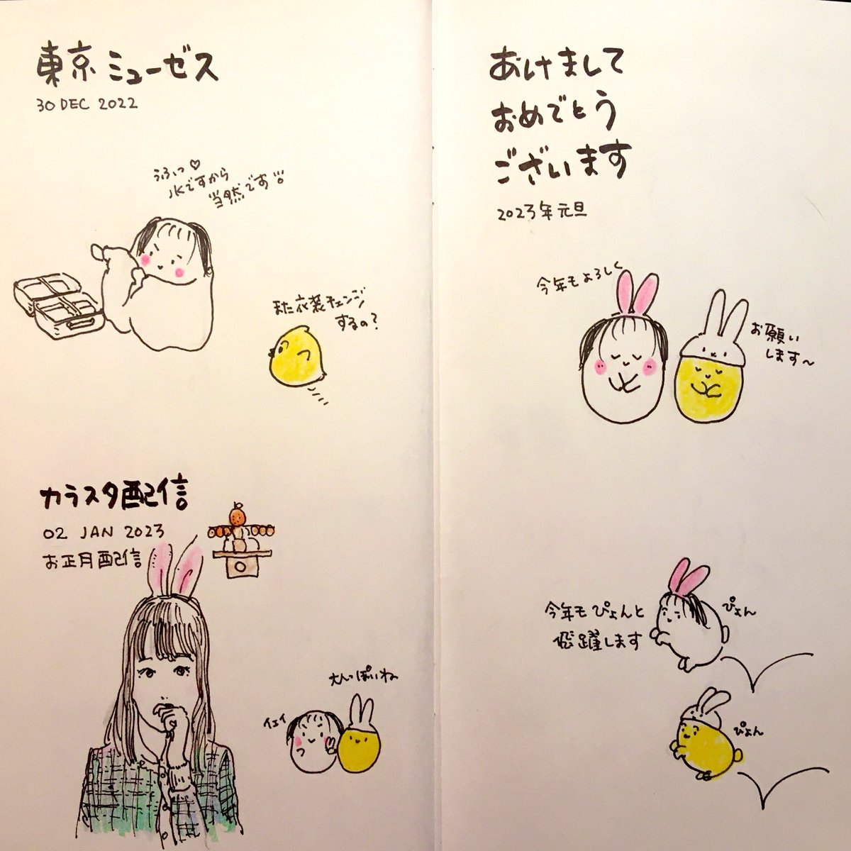見開きアーカイブ 2022年12月後半 2022.12月 の振り返りです。 仮想Xmasパーティは1.8万回表示 ありがとうございました 🍑使用画材 #トラベラーズノート #リフィル003 #呉竹筆ペン #コピックマルチライナー #ファーバーカステル水彩色鉛筆 #三菱鉛筆B #イラスト #よかったらお気に入り教えて下さい