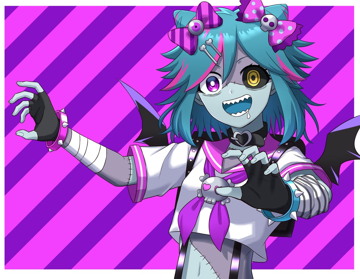 海外のお友達のNiyaちゃんにファンアート頂きましタ!!!背景もめっちゃ雰囲気合ってて可愛イ!!! ありがとウ~~!!😭😭😭 制作過程の配信アーカイブはコチラ!:youtube.com/watch?v=GOEc26… #呪々遺影