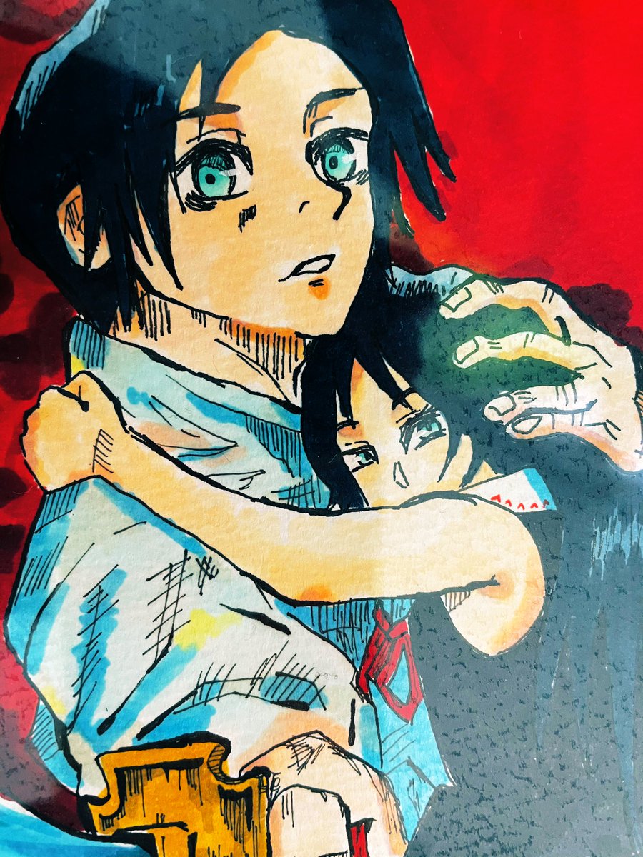 7話見て居ても立っても居られなくなり、五条先生描いたのが沼の始まりだったな…1週間で全巻揃えてアニメスターターブックも買った😅 この垢もそれで作ったし。 アナログで修正済だけどこれが始まりの一枚。 #呪術廻戦ファンアート #五条悟 #呪胎戴天編
