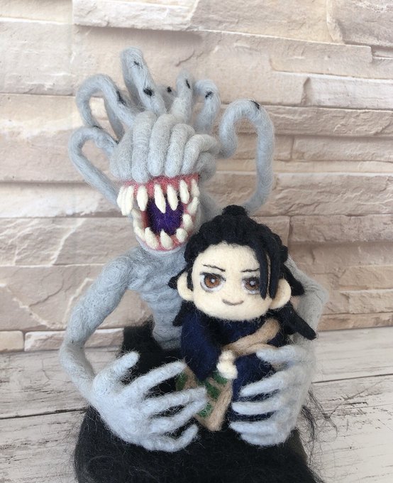 TLに里香ちゃんのドリンクホルダー⁇ がたくさん出てくるんだけど、めちゃくちゃ大きいね^^; 去年作った里香ちゃんが我がにもいるではないか〜✨と思い出し、ドリンク🥤では大き過ぎるので傑さん乗せた^o^ 『和解⁇』 #羊毛フェルト #呪術廻戦ゼロ #呪術廻戦ファンアート