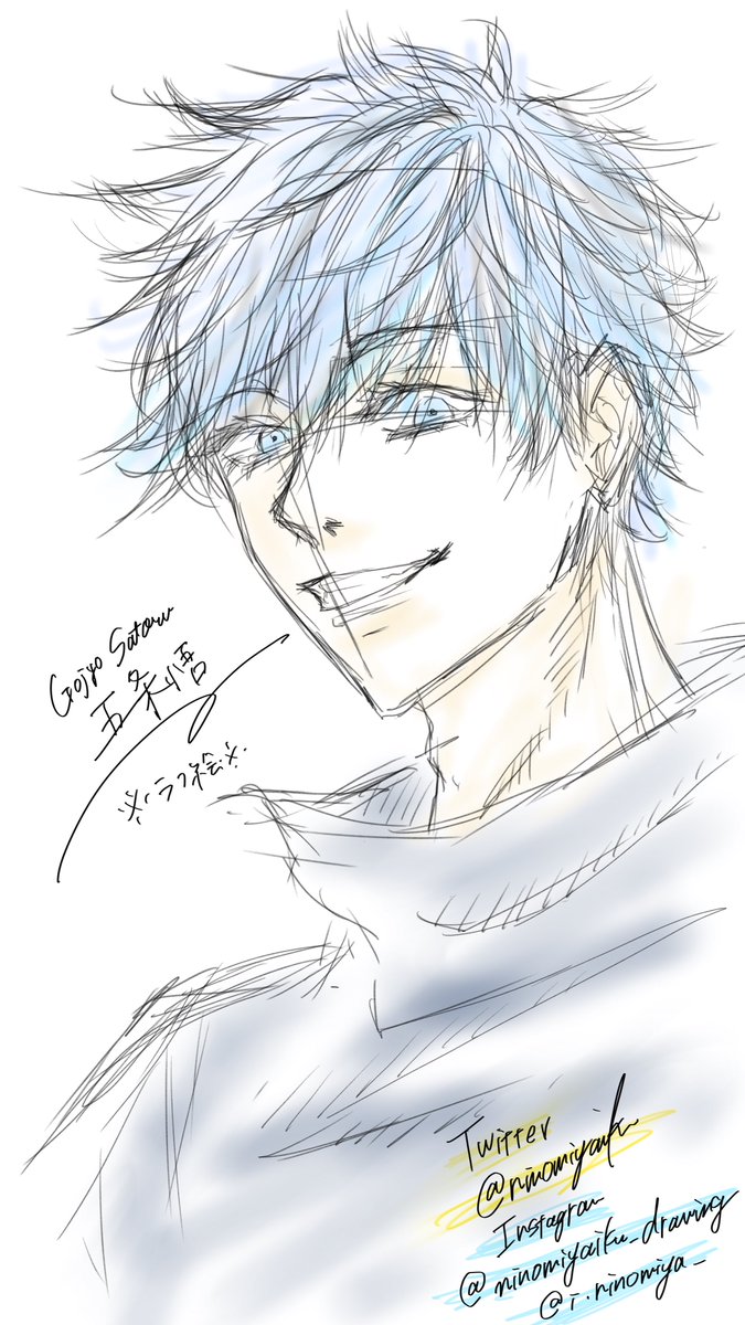 五条先生のラフ 友達にあげる用の下絵です もうちょい瞳小さくて良いのかしら? #呪術絵 #呪術廻戦 #呪術廻戦好きさんと繋がりたい #イラスト #デジタルイラスト #五条悟 #五条先生 #五条悟イラスト #絵描きさんと繋がりたい #絵師さんと繋がりたい #イラスト好きさんと繋がりたい #アニメ
