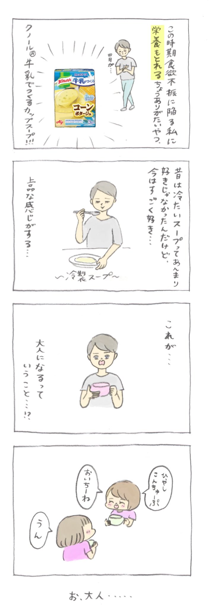 これからの季節にぴったり! 牛乳大好きな息子と一緒に、冷たいスープをちゅくってみた👶🐮🥛✨ #牛乳でつくるカップスープ #クノール #味の素 #PR ajinomoto.co.jp/knorr/tsumegyu…