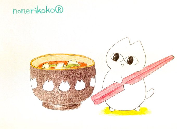 【お味噌汁が動いた】 食卓に並ぶお味噌汁とうさぎ。その時お味噌汁が動いた。とっさに避けるうさぎに支えるうさぎ。主人はそのコンビネーションに賞賛を送った。 suzuri.jp/Rabbithumanasp… #味噌汁 #うさぎ #イラスト #絵 #みんなで楽しむTwitter展覧会 #suzuri #suzuriで販売中