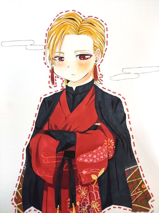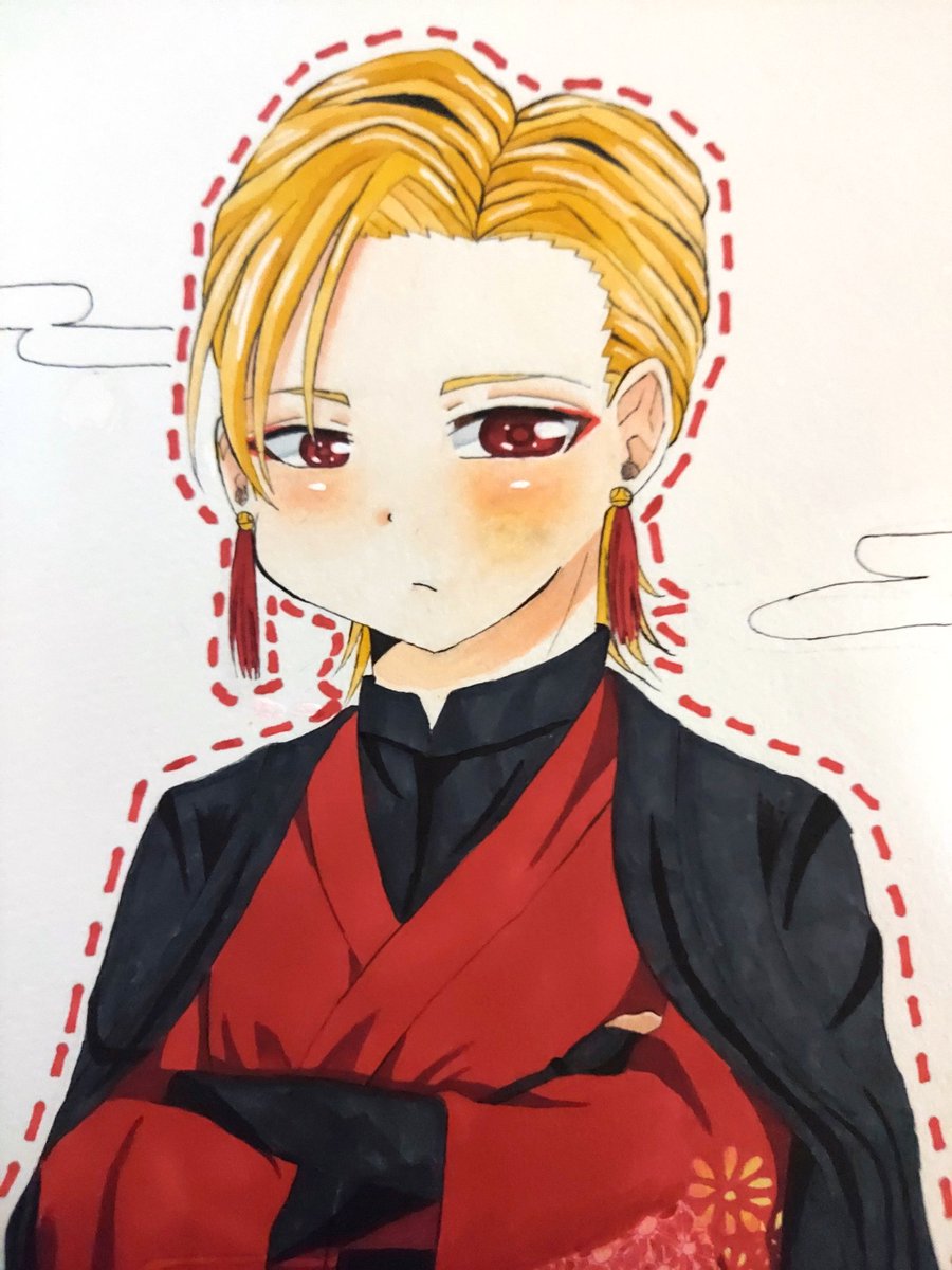 和中の兄貴(正月ver)。見たとき発狂したよね!ハプニングで見たら分かる通りほっぺに黄色のインクが飛び散った!!😭なんとか誤魔化したぜ!😏模様大変やった! #和中蒼一郎 #和中の兄貴 #天羽組 #ヒューマンバグ大学 #バグ大アート #イラスト #コピック #絵柄が好みって人にフォローされたい
