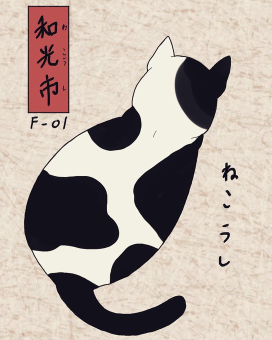 「其のまま地口 みゅくとしんせん」F01.和光市(わこうし)/ねこうし 牛のような模様の猫。 間もなく丑年も終わり。来年はトラ猫が主役。 #猫イラスト #ねこ #副都心線 #和光市 #白黒猫 #猫好きさんと繋がりたい #cat #japaneseart