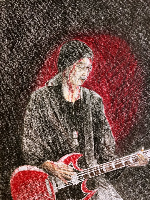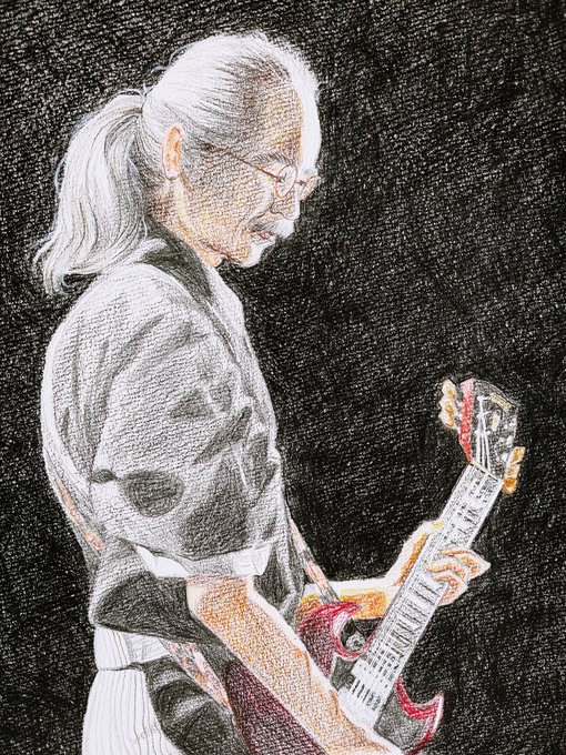 youtu.be/2YJWe2nsfPo FFの方に教えて頂きまして。 ドレスコーズ「人間ビデオ」和嶋さん演奏参加検閲無し版から。 #和嶋慎治 #色鉛筆画 #みんなで楽しむTwitter展覧会 YouTubeの方、閲覧注意です。