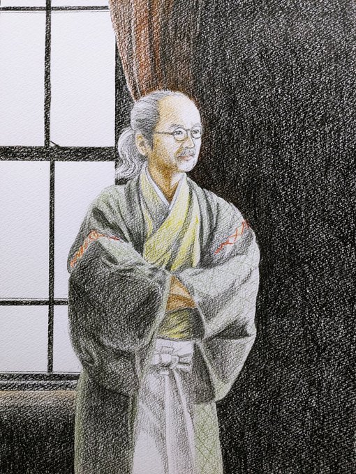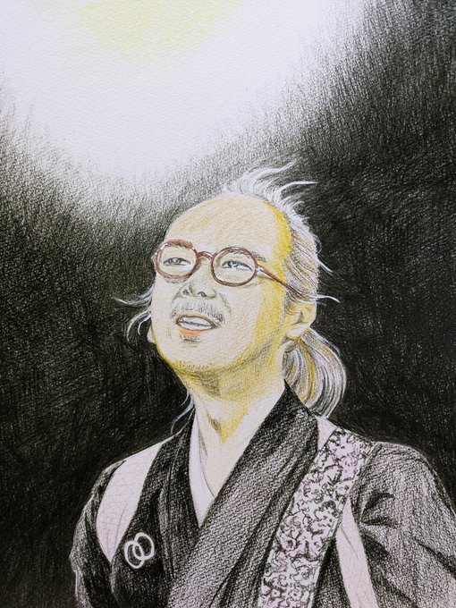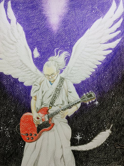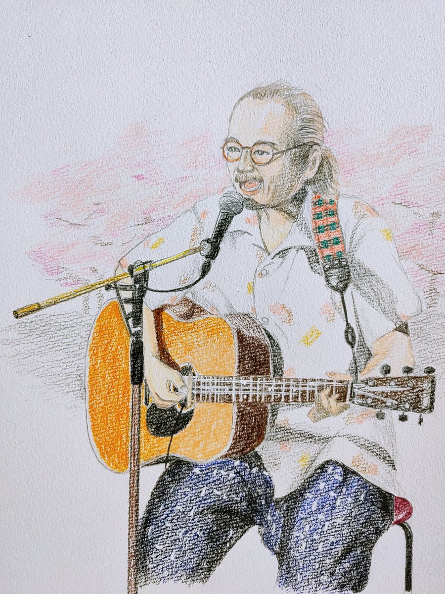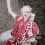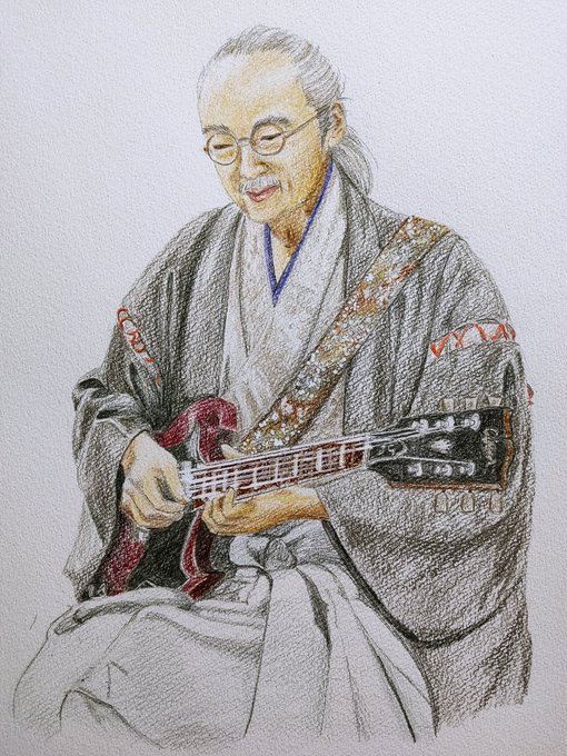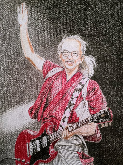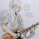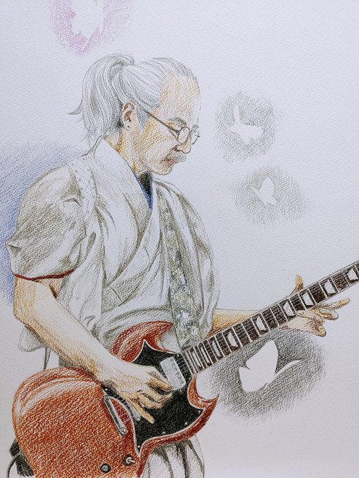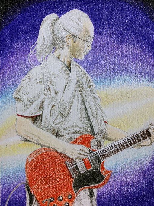 2015夏の魔物 #人間椅子 #鈴木研一 #和嶋慎治 #人間椅子好きさんと繋がりたい #みんなで楽しむTwitter展覧会 #色鉛筆画 #illustration 暑いのにぴったりくっついて演奏する二人💓💏💓