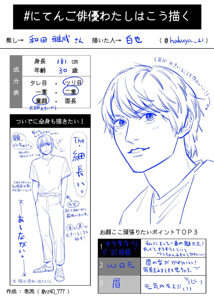 #にてんご俳優わたしはこう描く 素敵なテンプレとタグ🏷、ありがとうございます(> < ) 急流さんに誘っていただいたので描いてみました! 私はわりと写真見ながら描くのが多いです。推しのかっこよさを主張したいのです! #和田雅成