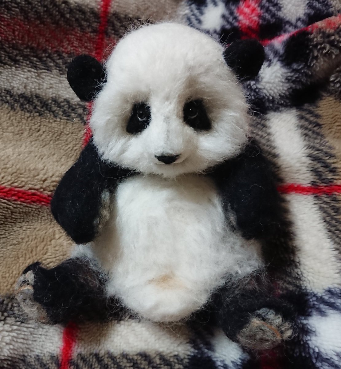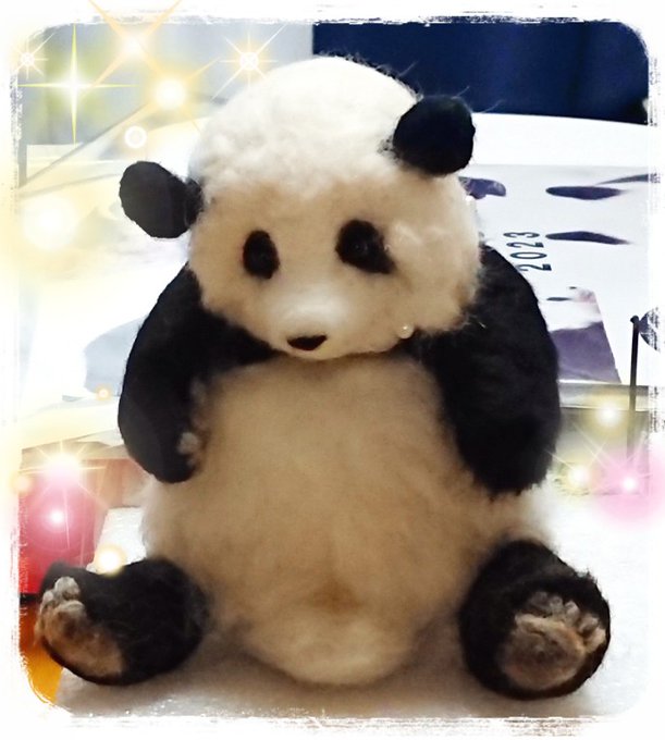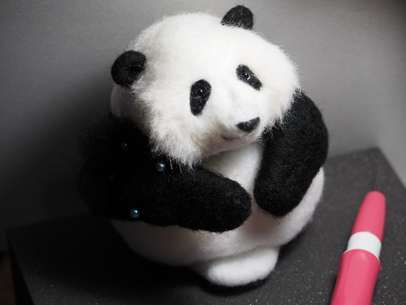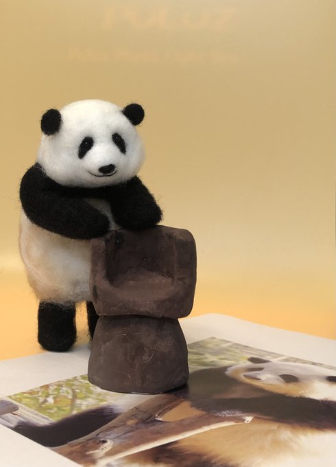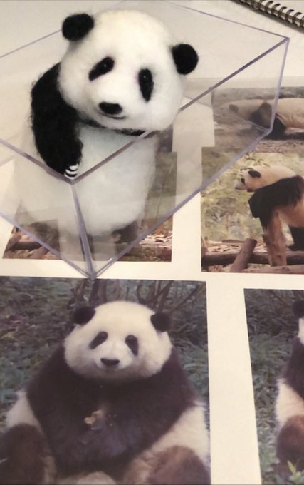 【ちーじー大熊猫繁殖センター】 🤣🤣🤣🤣🤣🤣🤣🤣🤣 和花ちゃん🌼 まだ途中。 なんか、笑える🤣🤣🤣 #giantpanda #hehua #和花 #羊毛フェルト #needlefelting