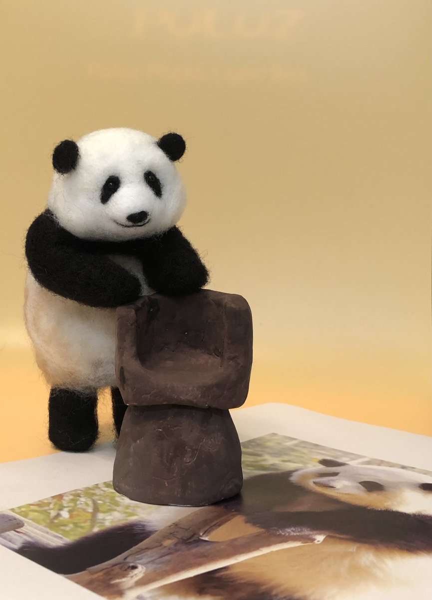 【ちーじー大熊猫繁殖センター】 和花ちゃん、トレーニング。 おやつ待ち。 #giantoanda #hehua #和花 #羊毛フェルト #needlefelting #ちーじー大熊猫繁殖センター