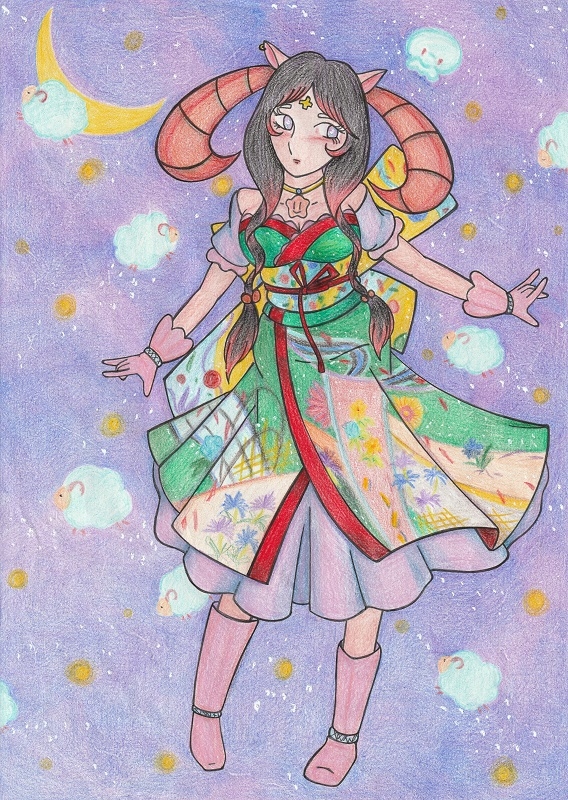 羊さん デルカさんお誕生日おめでとうございます #描かせていただきました #色鉛筆 #羊さん #和装ドレス #ウチの子コラボ #くらげちゃん #背景ホンキのイッパツ描き #ひつじ pixiv.net/artworks/92417…