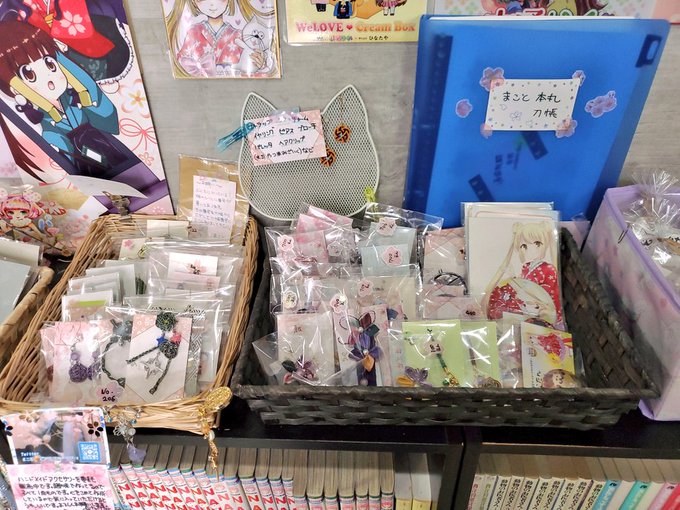 #和cafeひなたや さん 入ってすぐのところに水引やつまみ細工などハンドメイドアクセサリー置かせていただいてます🌸 6月は山姥切国広重文指定記念日もあるので何か企画できたらと思ってます🌸 twitter.com/makotoasagiiro…