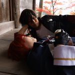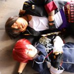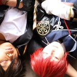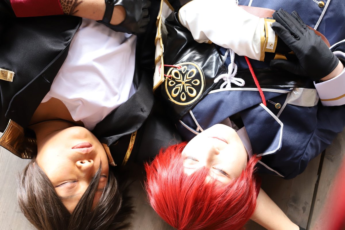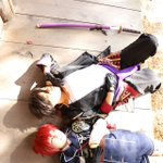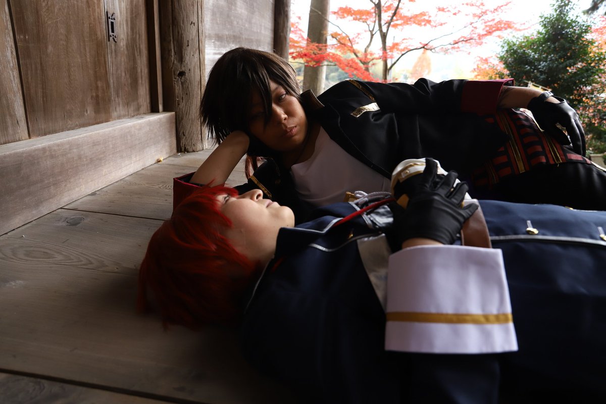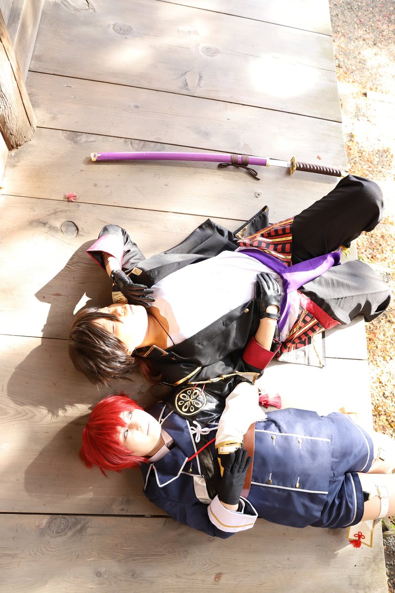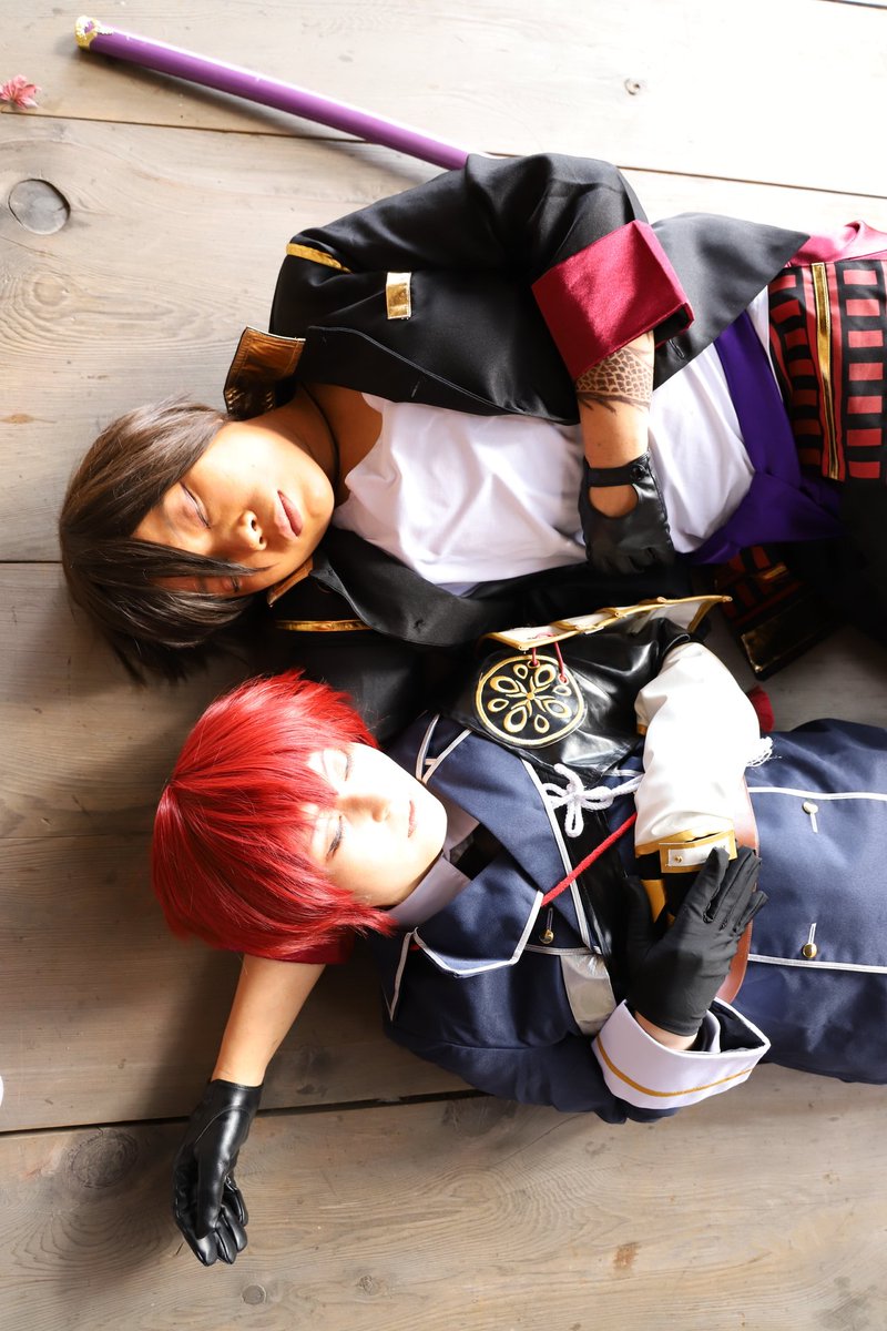 cosplay 信濃藤四郎→@imocompact 大倶利伽羅→私 📷️→ @ushicos #咖喱本丸秋の陣2111 滅茶苦茶可愛い信濃に沢山遊んで貰ったので、疲れて寝た二振になったwww
