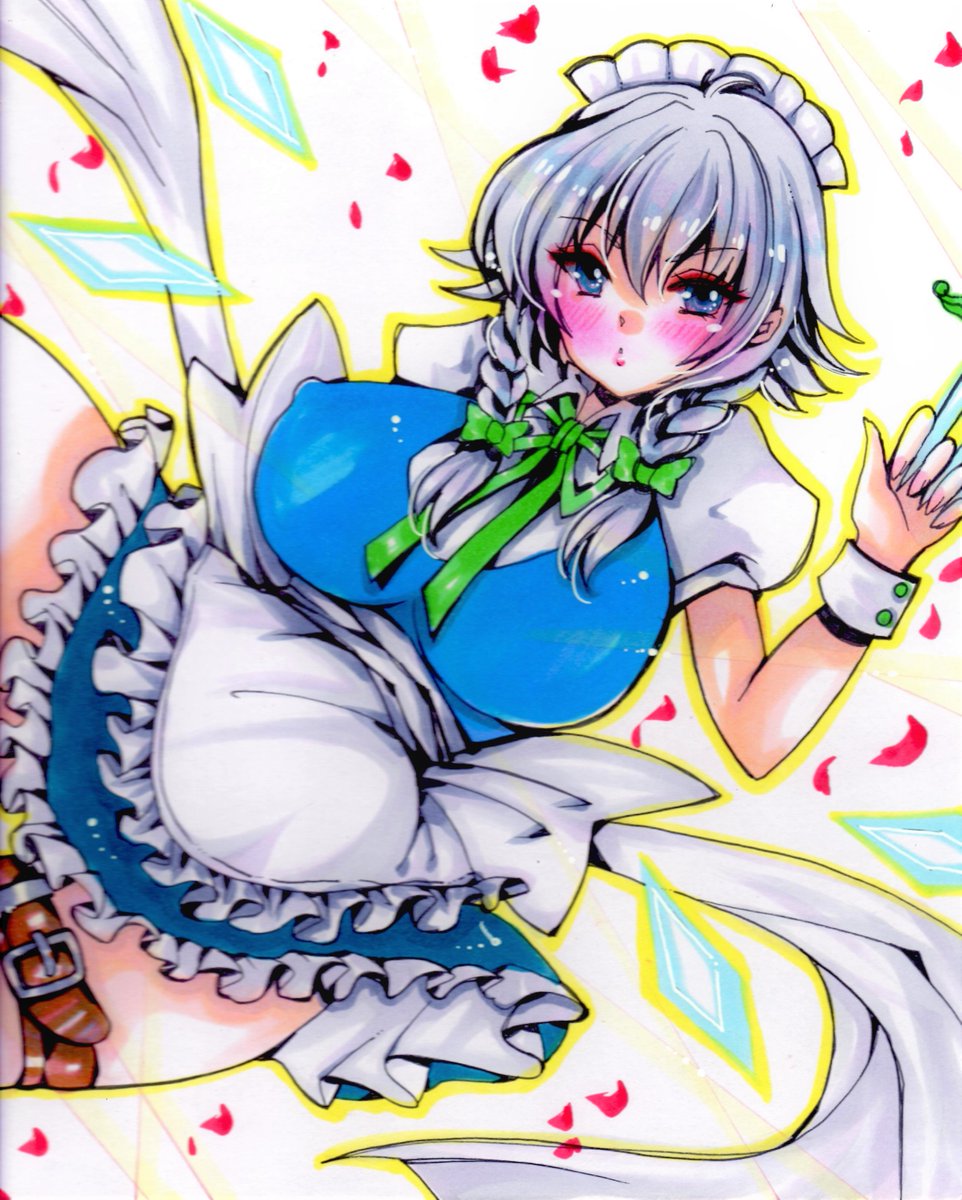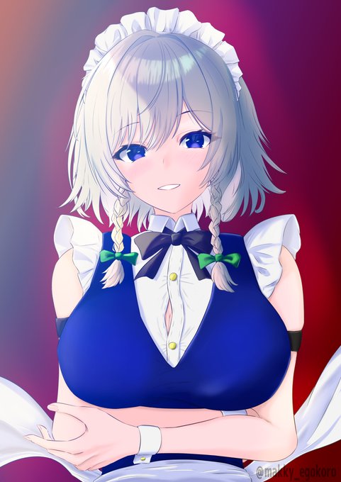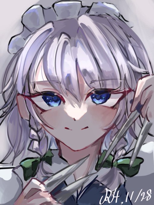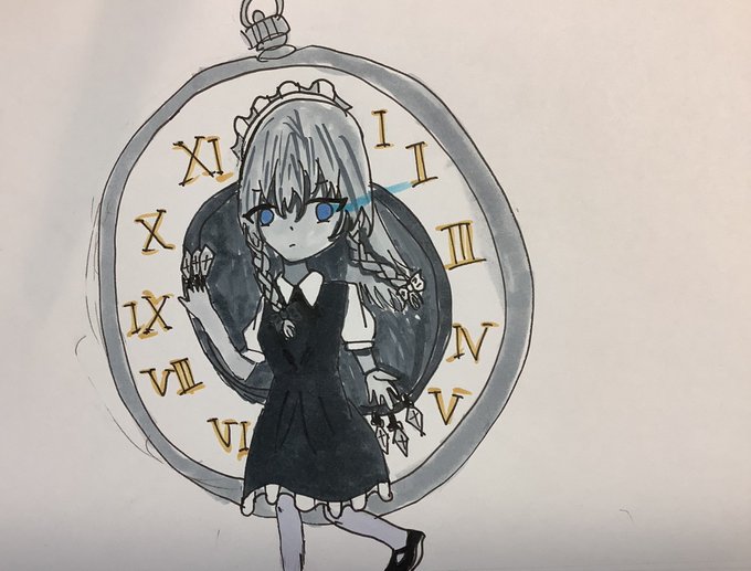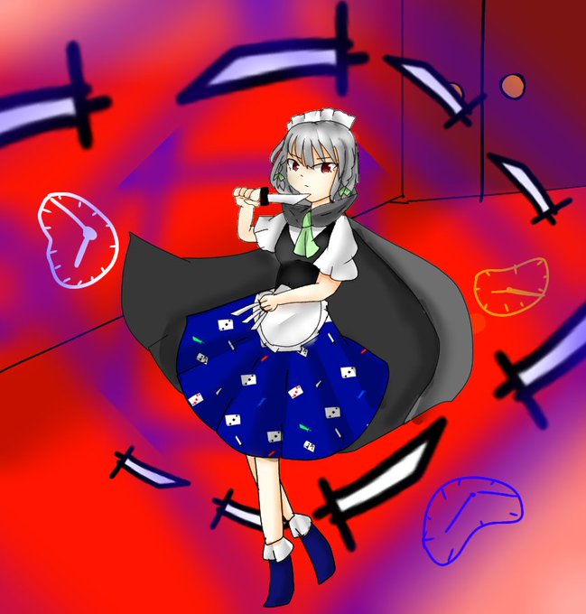 危険な手品師 十六夜咲夜🗡️ 色を塗るときに髪の色を変更してみてください。ペイントが完了すると、結果は良好です 目の色を塗ると、いつもうまく描けない #東方project #十六夜咲夜 #東方紅魔鄉 #咲夜 #絵描きさんと繋がりたい