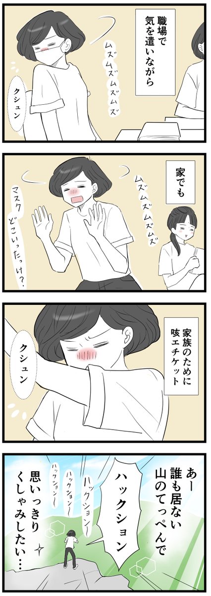 #新しい生活様式 に配慮した漫画です。 過去はnoteで。 ①〜③note.com/ouchk43ru/n/n0… #漫画が読めるハッシュタグ #みんなで楽しむTwitter展覧会 #漫画 #咳エチケット #3密 #マスク #フェイスシールド #KOIVID19