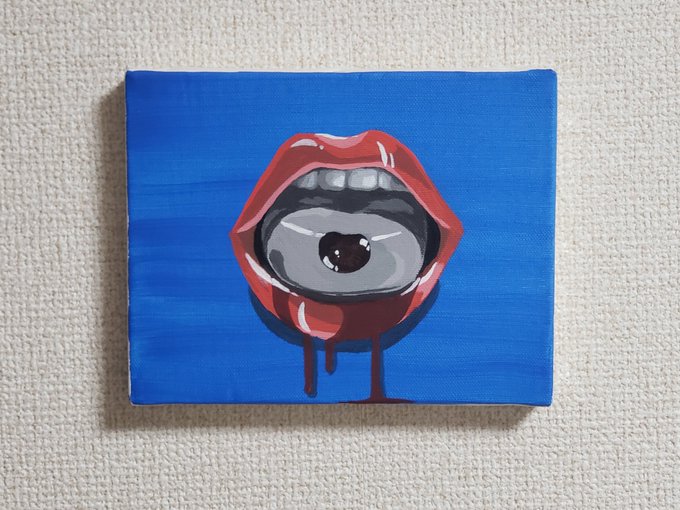夏休みの課題で描きました! #絵描きさんと繋がりたい #イラスト #イラスト好きな人と繋がりたい #絵 #drawing #キャンバス #唇 #眼球 #血 #RT希望 #RTキャンペーン #いいねした人全員フォローする #フォロバ100パーセント
