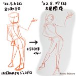 今日のジェスチャードローイングはC.さん 想像で裾フレアースカートをつけて見た練習 #8つ勉 #唯さんセミナー #GESDRAWParty #じぇすどろパーティー #AdobeFresco #イラスト