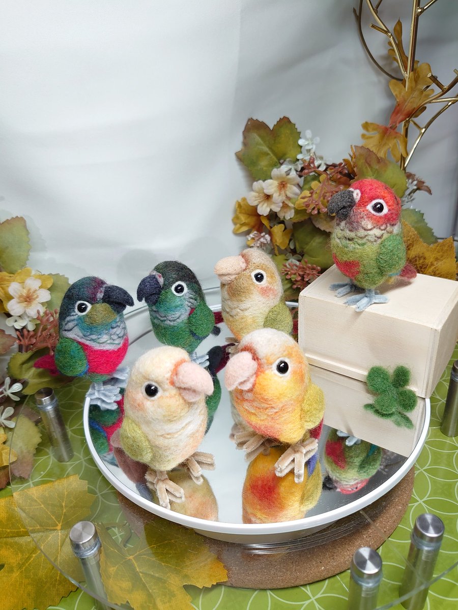 こんにちは😊♡ #唯一無二インコ 中島です…本日巣立ち前インコは…🤗 ご依頼番号105番 #ブルーボタンインコ #コザクラインコ #ワカケホンセイインコ ご依頼番号106番 #オキナインコ チャーム たくさんのご依頼(^^)💦 ありがとうございます♡ 楽しみにお待ち頂けますと幸いです♡ #羊毛フェルト