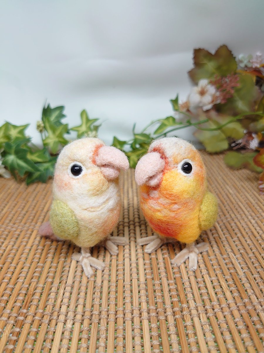 こんにちは😊✨ #唯一無二インコ 中島です♡ ご依頼番号124番 #コザクラインコ ノーマル&モーブ🐤🐤 仲良く本日巣立ちました🤗 お迎えよろしくお願いします!! #羊毛フェルトオーダー #羊毛インコ #羊毛マスコット #羊毛フェルトインコ #ハンドメイド #woolfelting #インコマスコット #羊毛フェルト