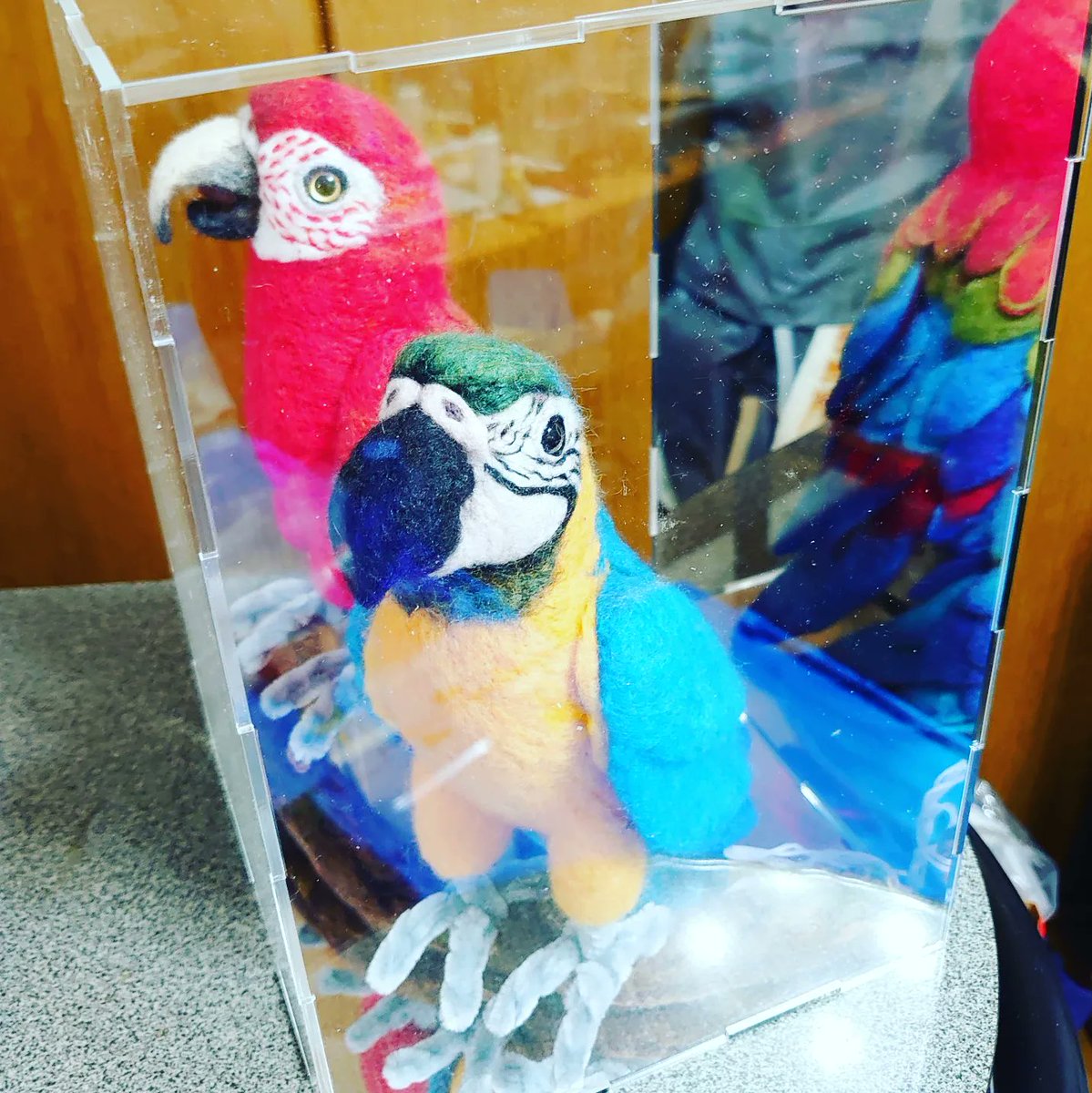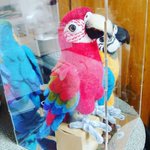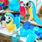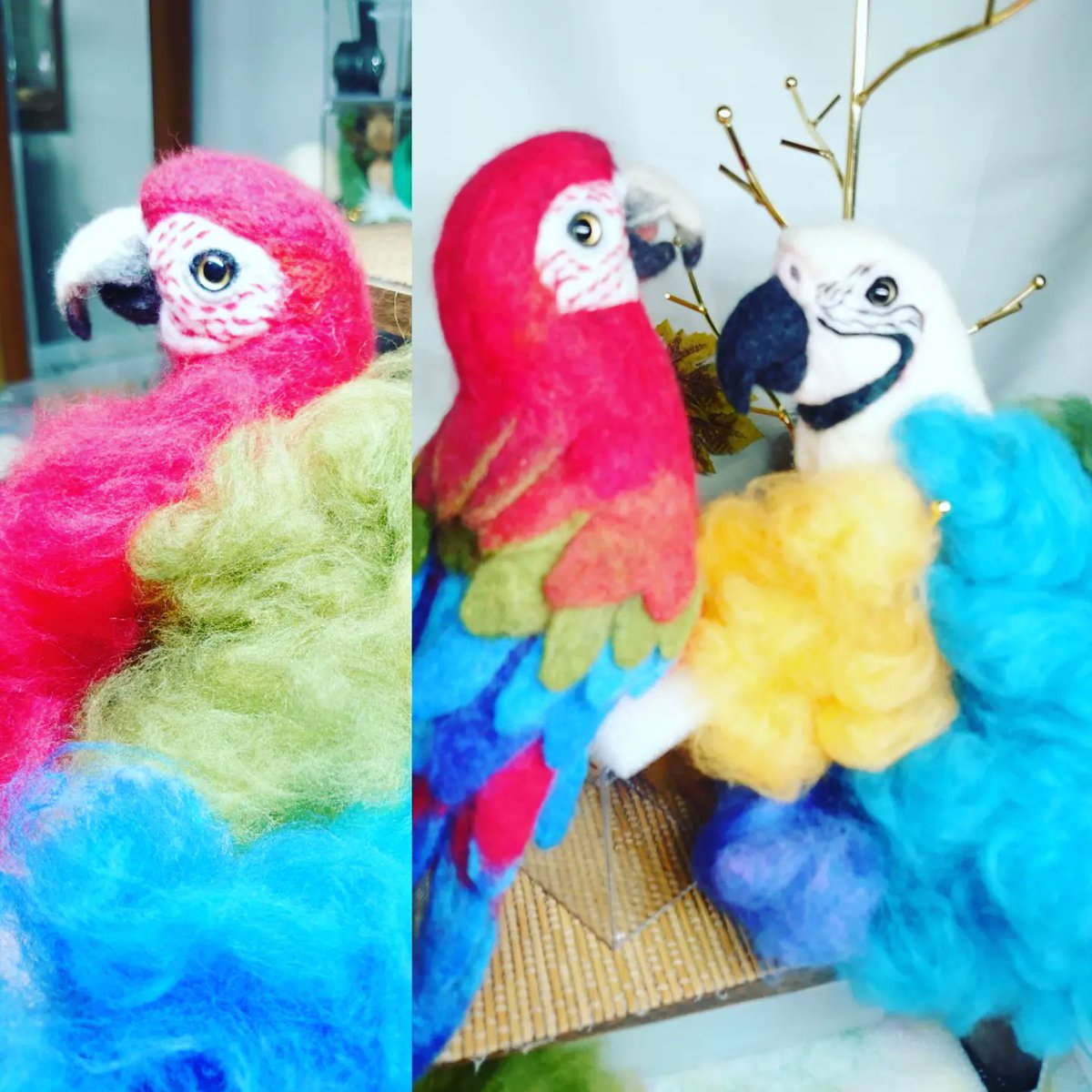 おはようございます♡ #唯一無二インコ 中島です ご依頼番号109番 #ベニコンゴウインコ #ルリコンゴウインコ 全長(嘴〜尾)約30センチ超体高 約20センチ超 かなり大きく製作期間約1ヶを要し…ようやく完成✨ お迎え…よろしくお願い致します🙏💕✨ #羊毛フェルトインコ #羊毛インコ #羊毛フェルト