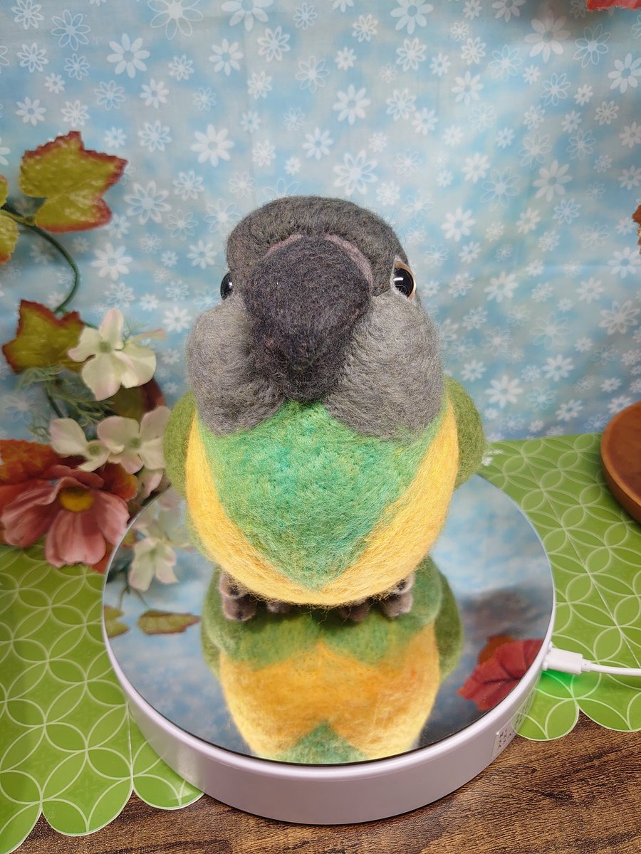 こんにちは😊♡ #唯一無二インコ 中島です ご依頼番号119番 #ムネアカゴシキセイガイインコ 今回はゴシキでも特にお色が珍しく👀 お顔のお色は黒っぽいけど青、緑、赤などが見え隠れの術〜😆うまく再現されているとうれしいな〜🤗💕 お迎えよろしくお願いします #ゴシキセイガイインコ #羊毛フェルト