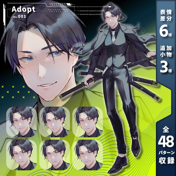 🎉BOOTHショップオープン🎉 買い切りフリー立ち絵素材を公開しました! 差分がたくさんあるのでレベルアップや覚醒風にもできます! 日本刀 × スーツ × 短髪!(ポニテ差分有)男性立ち絵素材【表情6種/追加パーツ3種】#01 | #kg_Illust #キャラ販売 #商用利用可 kgworks.booth.pm/items/4724189 #booth_pm