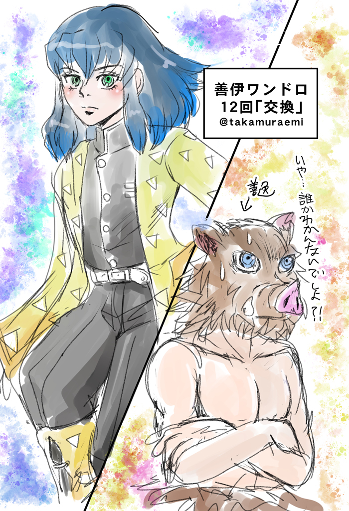 #善伊版ワンドロワンライ 開催ありがとうございます! お題「キャンディ」で参加です! ド深夜に描き始めて描き上げました ⚡️くんが惚れるポイントはやっぱりたまにふいうちでくる🐗ちゃんの優しさだといいな