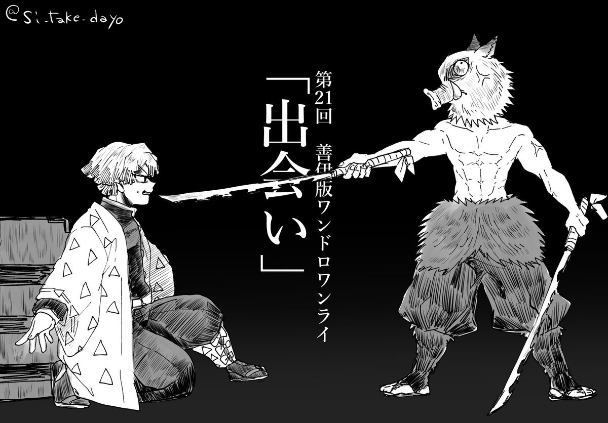 #善伊版ワンドロワンライ 開催ありがとうございます(* ॑꒳ ॑* )⋆* のんびりのんびり描かせていただきました 参加できてヨカッタァァァ お題「雨宿り」より【善伊】 まだまだ未満善伊 任務帰りの山の中、かな なんだかんだで世話を焼いちゃう善となんだかんだで言うこと聞いちゃう伊です