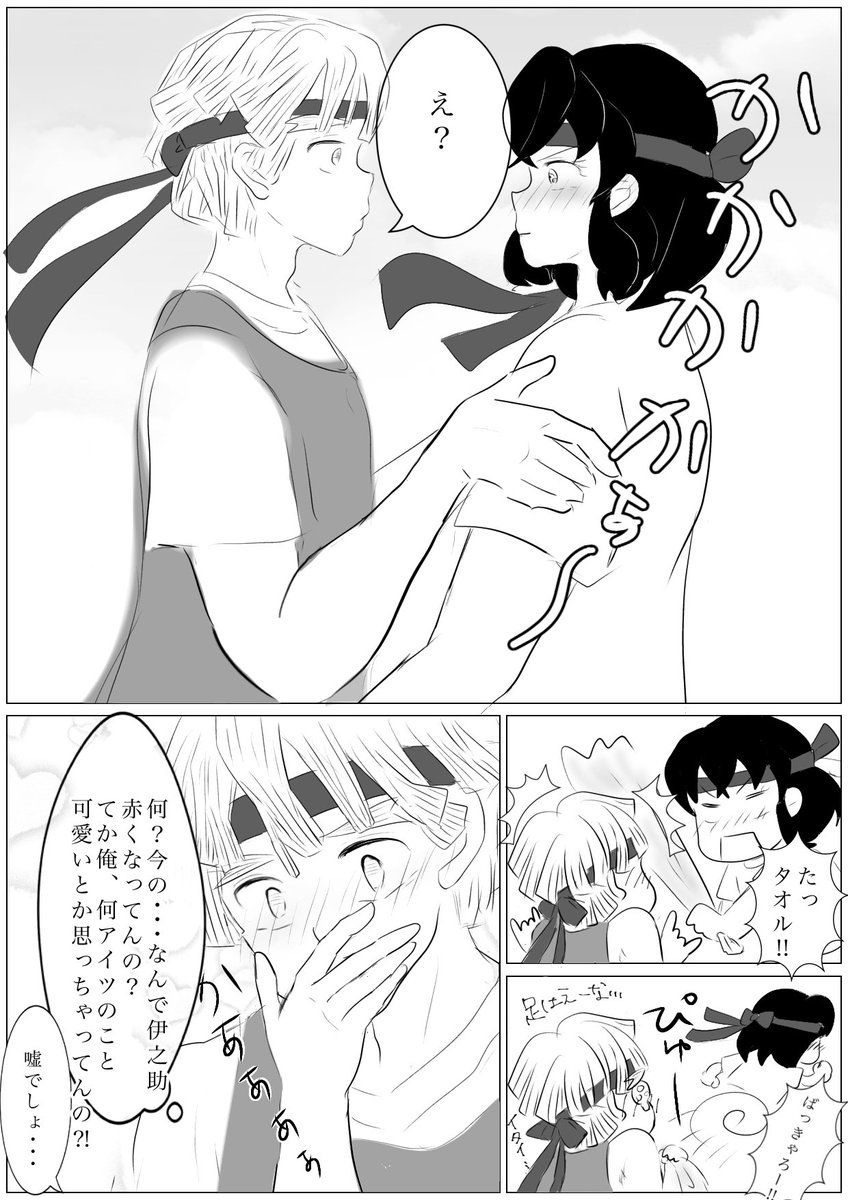 #善伊版ワンドロワンライ 開催ありがとうございます(o・v・)♪ 相変わらずのんびり描かせていただきました お題『休日』より【善伊】 社会人同棲してる善伊です お肌多めなのでワンクッションm(_ _)m poipiku.com/3621419/674182…