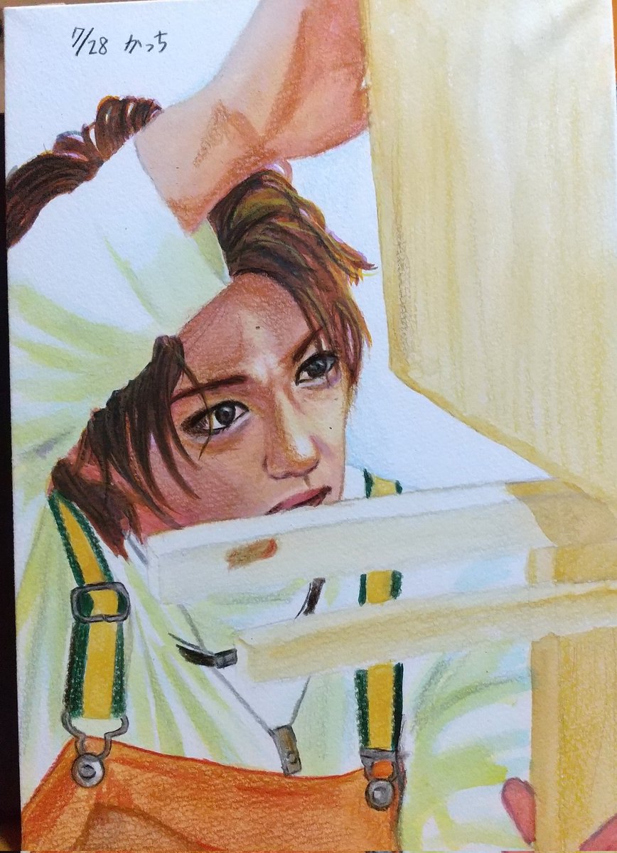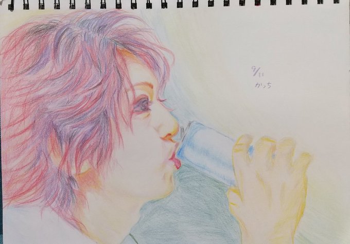 水分補給されてる口が可愛い広報部長を描いてみた😌 ちょっと色明るめに描いてみた🤔 ゆこさん(@yutatatasho)さんの素敵すぎる神写真をお借りしました ありがとうございます #東京パルクール委員会広報部長 #喜矢武豊 #ゴールデンボンバー #色鉛筆画 #絵師さんとつながりたい #トンボ色鉛筆36色