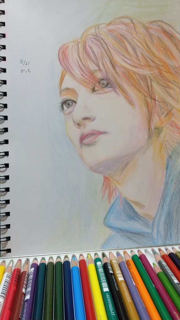 HTML ZERO3の豊さん描いてみました😀 毎年このコラボ本当に嬉しい🤗 ※写真暗かったからあげなおし #喜矢武豊 #ゴールデンボンバー #HTMLZERO3 #色鉛筆画 #ユニカラー100 #絵描きさんと繫がりたい