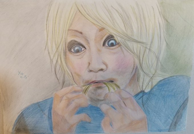 Yeah!めっちゃストレスのMVの中で、枯れ草を食べてる豊さんを描いてみました🤗 100色色鉛筆凄い楽しい🤗 #Yeahめっちゃストレス #人間こそがパラドックス #ゴールデンボンバー #喜矢武豊 #色鉛筆画 #ユニカラー