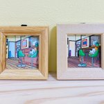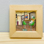 明後日8/1からはじまる、初富レトロサロン【純喫茶が好き】へ納品予定の #ミニアート 。 今回の会場「ニューフジコ」で待ち合わせする女の子ともる☕️ #カフェ #レトロ #純喫茶 #喫茶店好きな人と繋がりたい #イラスト #illustration #drawing #イラストレーターさんと繋がりたい