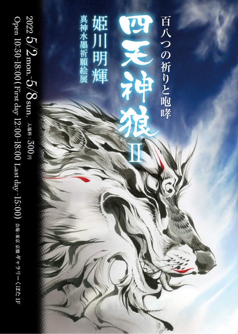 【個展のお知らせ】✨ 昨年京都ちおん舎で開催した『四天神狼』を東京でも開催する事になりました‼️ 2020年コロナ禍退散を願って描き綴った大口真神(狼)の墨絵108枚。ぜひ宜しくお願い致します🐺 5/2〜5/8 場所:ギャラリーくぼた1F(京橋) hap-animalartgllery.jimdofree.com #四天神狼in東京 #四天神狼