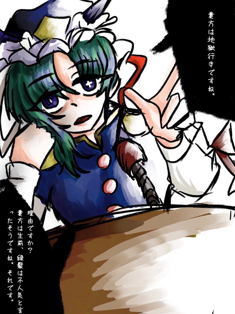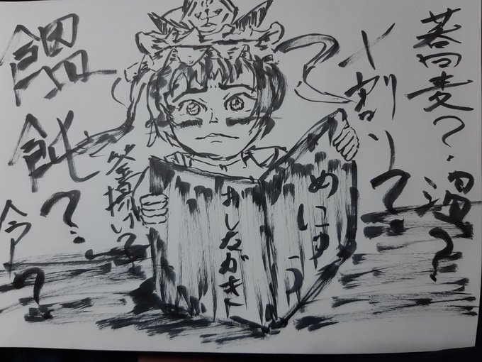 甲乙つけがたいラインナップの蕎麦屋で何を注文するか白黒つけられずにかれこれ10分経過して、同席している小町に腕組み舌打ち貧乏揺すりで無言のプレッシャーをかけられて半泣きになる四季映姫・ヤマザナドゥ! #四季映姫・ヤマザナドゥ #東方Project #筆ペン