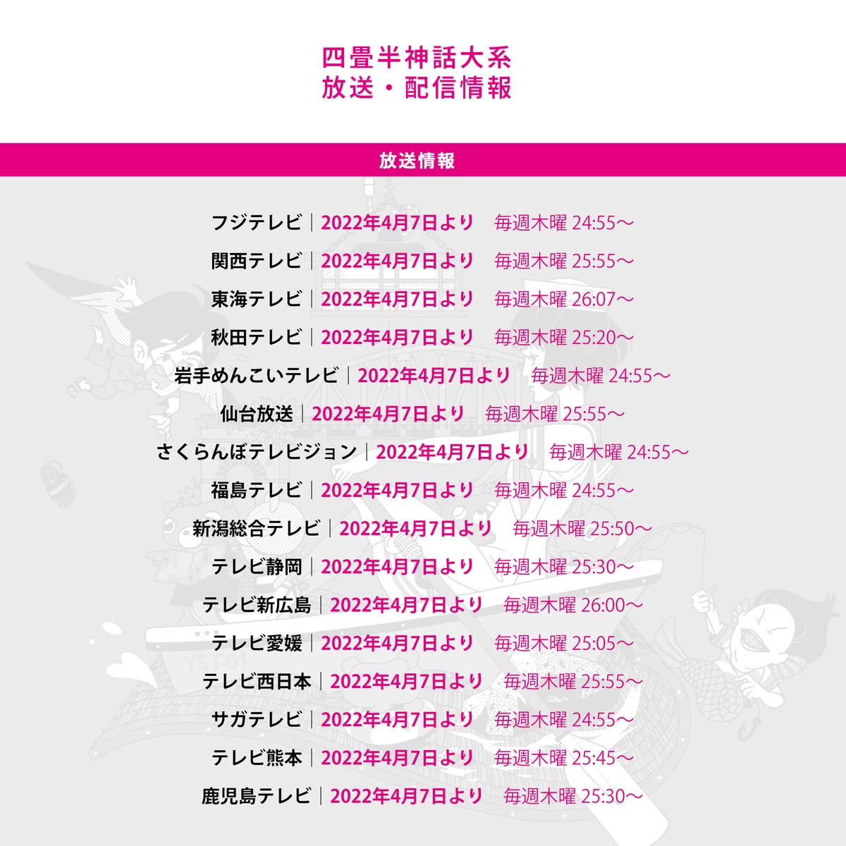 今夜は『 #四畳半神話大系 』の再放送曜日です。新作劇場アニメ『 #四畳半タイムマシンブルース 』は9/30より全国ロードショー/ 予習もかねてぜひ⌛yojohan-timemachine.asmik-ace.co.jp