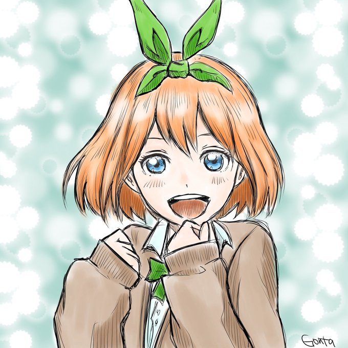 服とかが雑になってしまった😭 目と髪を頑張ったかな(。・_・。)ノ 色々反省点があるから見直してみよう👀 #模写 #イラスト #五等分の花嫁 #四葉 #絵描きさんと仲良くなりたい #絵かきさんと繋がりたい
